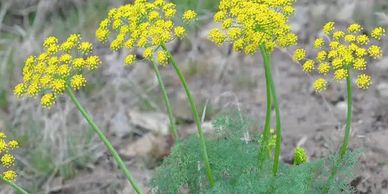 Lomatium, commonly known as biscuitroot, is a genus of drought-tolerant perennial herbs in the carrot family, native to western North America, with species like Lomatium dissectum (fernleaf biscuitroot) and Lomatium triternatum (nineleaf biscuitroot). These plants are characterized by fern-like or celery-like leaves, yellow to reddish flowers in umbrella-shaped clusters (umbels), and a thick taproot, and have historically been used by Native Americans for both food and medicine.